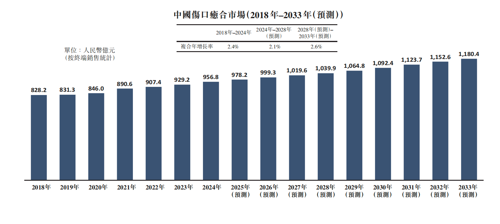 当前,我国术后伤口愈合赛道正迎来千亿级市场爆发。据弗若斯特沙利文数据,2024年中国术后伤口愈合市场规模已达957亿元,预计2033年将攀升至1180亿元。持续扩容蓝海市场中,华芢生物凭借PDGF(血小板衍生生长因子)核心技术与全场景研发布局,成为助推行业发展的关键力量。